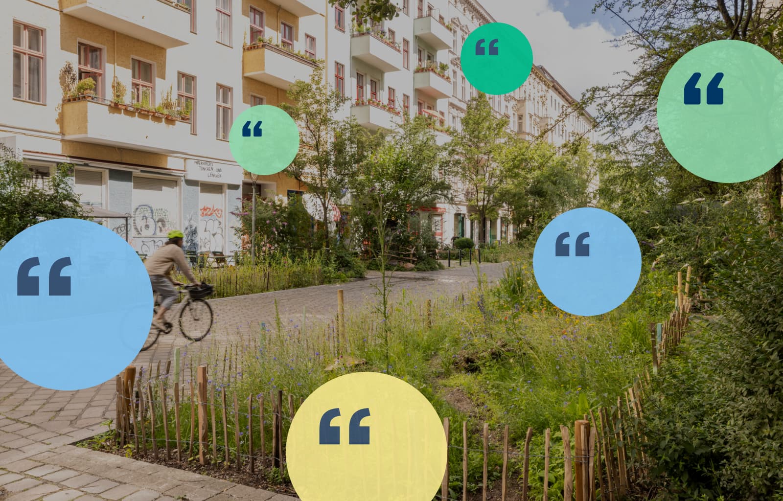 Wie wird Berlin zur Schwammhauptstadt? Im März 2023 haben wir dazu einen Ideenwettbewerb gestartet. Die drei Publikumssieger:innen haben wir gefragt, wo sie ein Jahr danach stehen.